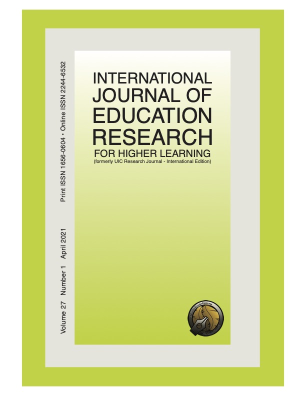Vol. 27 No. 1 (2021)International Journal of Education Research for Higher Learning Copyright © 2018 by the individual authors and the University of the Immaculate Conception. All rights reserved. Printed in the Philippines. Reproduction without permission from the publisher is strictly prohibited.